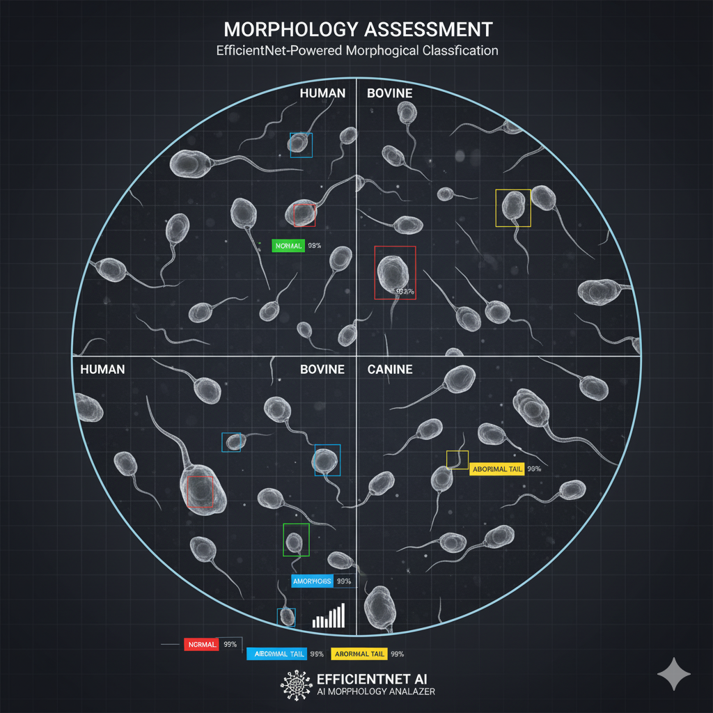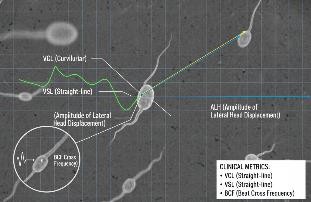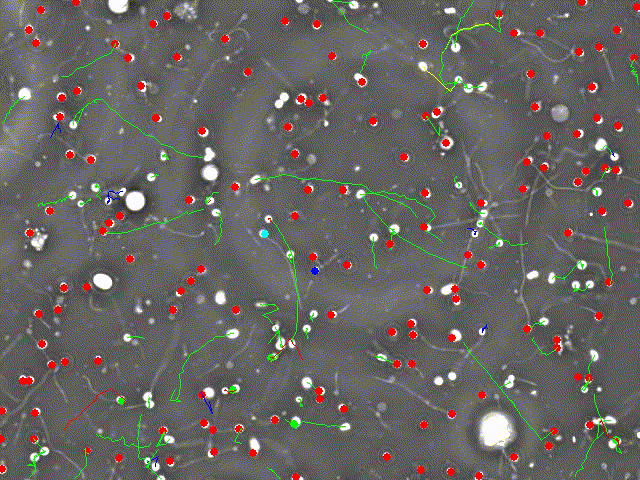 Classification conforme à l'OMS des motifs de mouvement des spermatozoïdes avec suivi alimenté par l'IA.